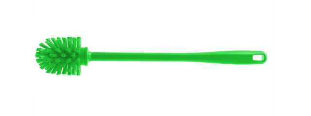 Hergestellt wird diese Wolfbürste aus einem Guss. Es gibt daher kein Gewinde zwischen dem Bürstenkopf und dem Griff, in welchem sich Schmutz oder Lebensmittelreste ablagern können.