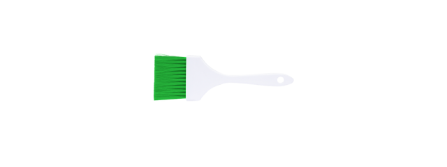Dieser Lebensmittelpinsel ist 30mm breit und eignet sich vor allem bei der Herstellung von Backwaren z.B. beim Auftragen von Eiklar auf glatten oder strukturierten Oberflächen.