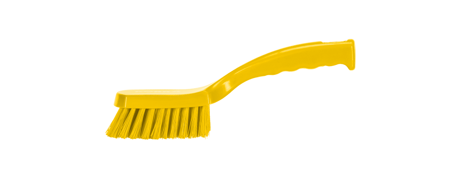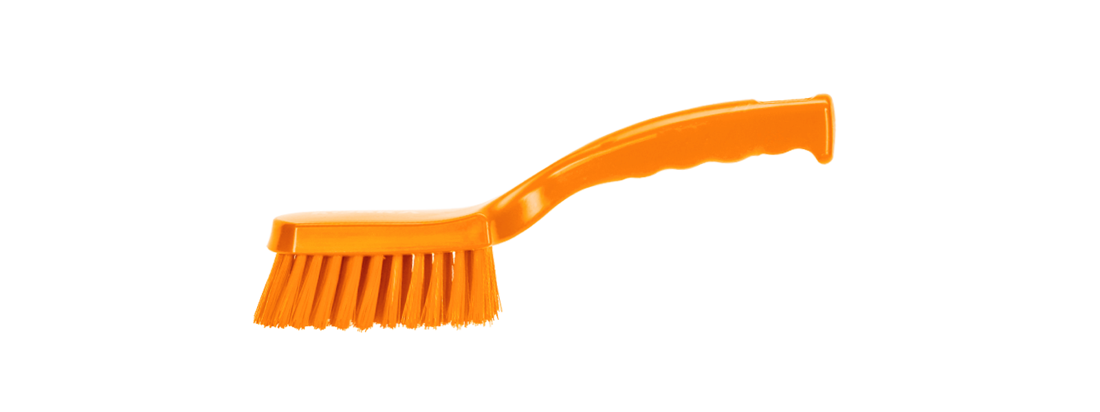 Diese harte, breite Stielbürste eignet sich für vielfältige Anwendungen. Vor allem für die Beseitigung von mittleren bis hartnäckigen Verschmutzungen (wie z.B. eingetrocknetes Pulver oder eingetrocknete Flüssigkeit)