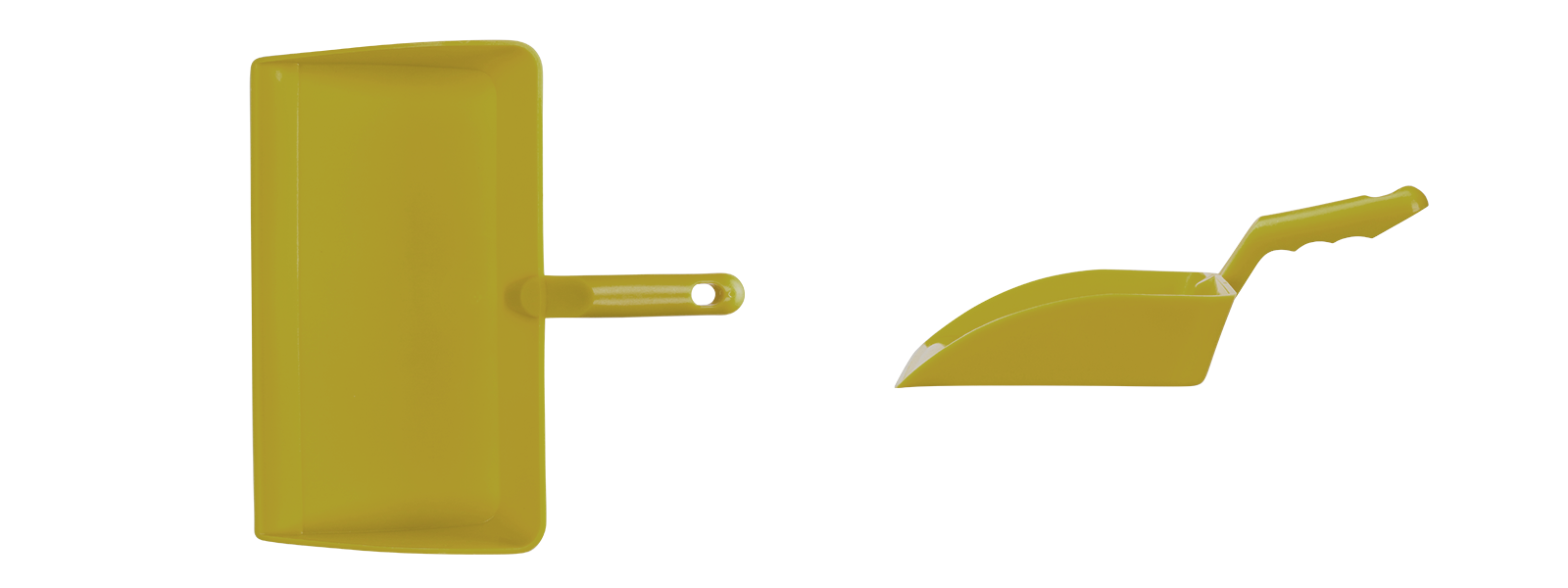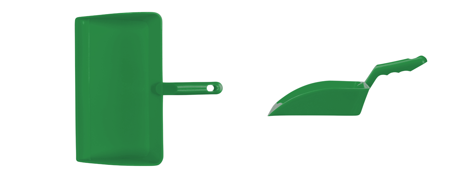 Die Kehrschaufel kann aufgrund ihrer breiten Form mit erhöhten Seiten und einer höheren Rückseite sehr viel Material aufnehmen.